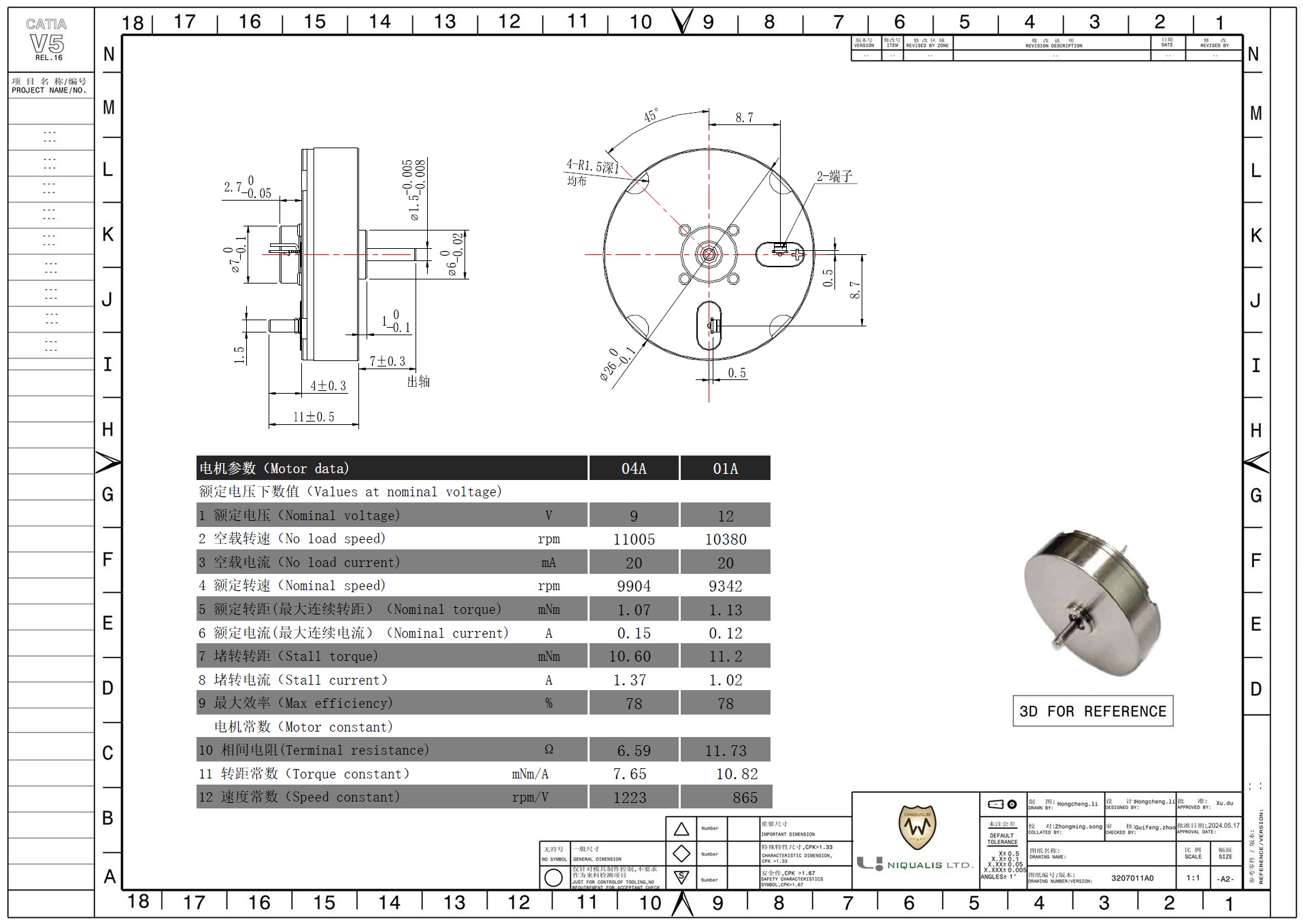 5. Nominal torque / Max continuous torque 9.09mNm /28.42mNm